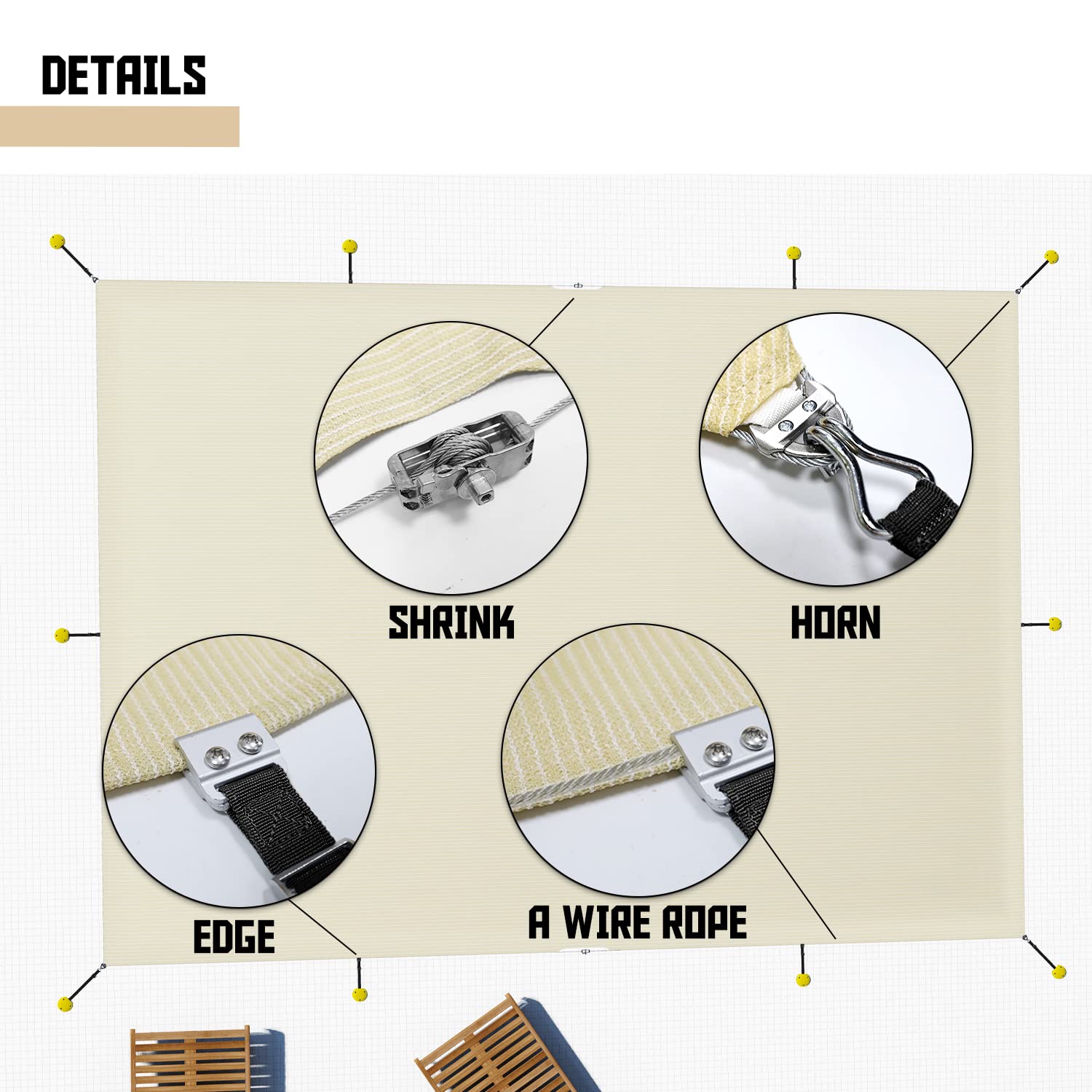 TANG 20'x38' Inground Pool Cover Safety Winter Covers with Wire Rope Hemmed All Edges, Heavy Duty Rectangular Mesh Cover for Swimming Pools Leaf Net Covers (Beige)