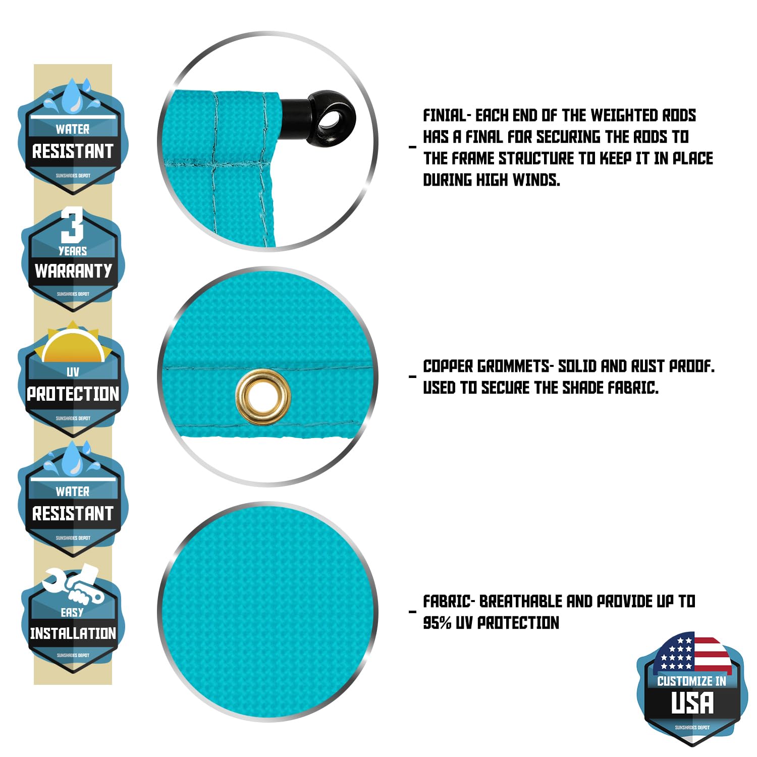 - Package includes: shade cover x1, weight rods x2. Customized size available. For assistance, please contact us via amazon message.