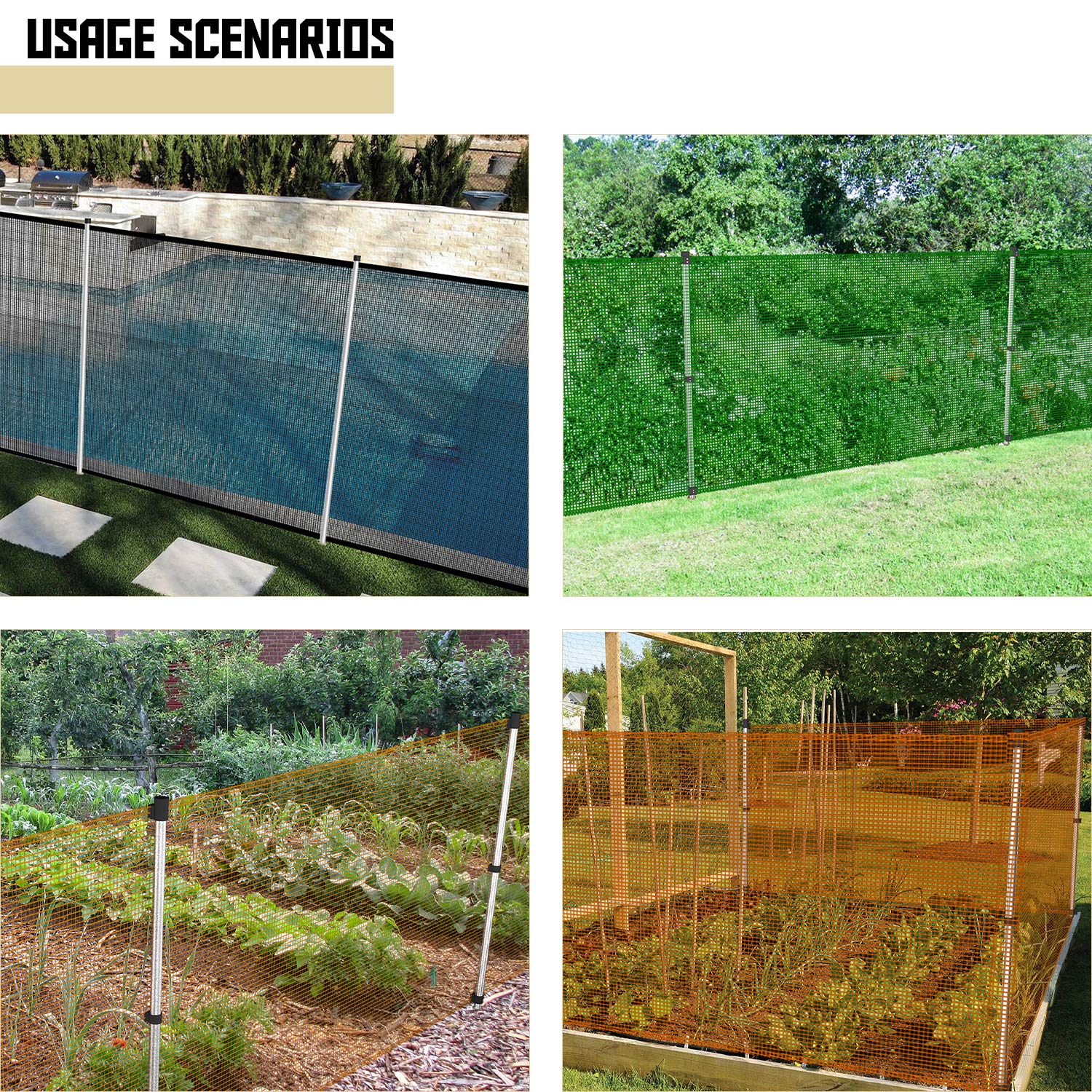 - Easy installation- Directly hammer the ground spike into ground and insert sleeves and fence poles.